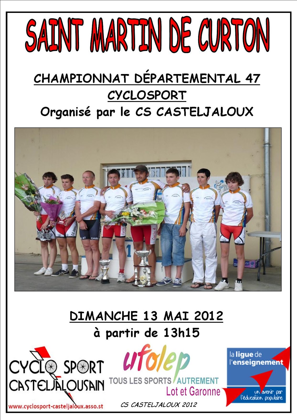 Le dimanche 13 mai 2012 se déroulera le championnat départemental UFOLEP sur la commune de Saint Martin de Curton. Le circuit, d'une longueur de 15km, ne présente pas de difficultés particulières si ce n'est la côte d'arrivée d'environ 500m qui se passe sur le grand plateau. Ce profil permet d'élargir considérablement le nombre de prétendants aux titres dans les différentes catégories.