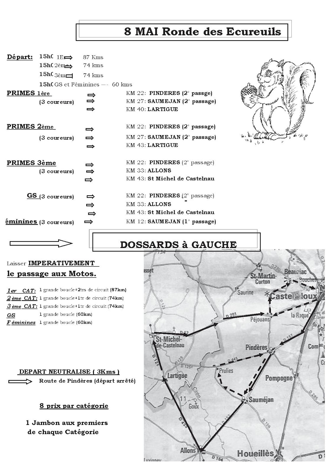 lieu le 8 mai comme d'habitude avec départ et arrivée à Casteljaloux. Cette épreuve est particulièrement