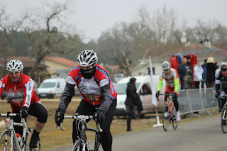 Mais nos coureurs ont déjà remis le bleu de chauffe pour aller ferrailler avec leurs homologues aquitains voire pyrénéens. Le samedi 23 février, Jean Paul Ounzari a participé à la course d'Uchacq (40) dans le peloton des 2° catégorie. La météo hivernale et le manque de rythme n'ont pas permis à notre président d'être aux avants postes. Il est vrai que courir avec la veste polaire n'est pas habituel par chez nous mais bon, cela fait parti des aléas du sport en extérieur. Roger Tisné en GS essaya lui aussi de s'illustrer mais sans plus de succès que Jean Paul.